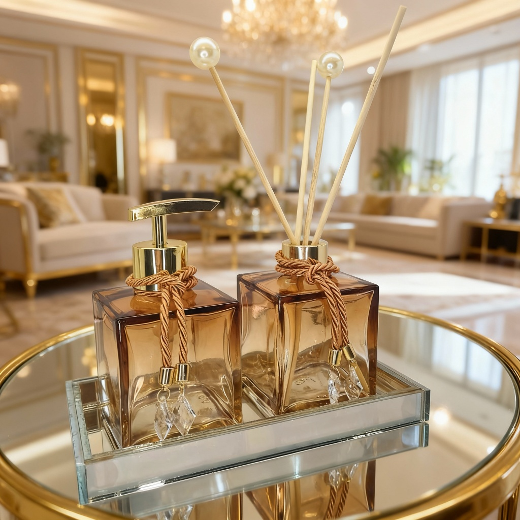 Pensado para quem valoriza os detalhes, este kit tem beleza, funcionalidade e durabilidade , transformando o lavabo ou banheiro em um espaço elegante, acolhedor e marcante. Os frascos possuem acabamento sofisticado e tamanho ideal para se destacarem na decoração, mantendo o ambiente perfumado por muito mais tempo.