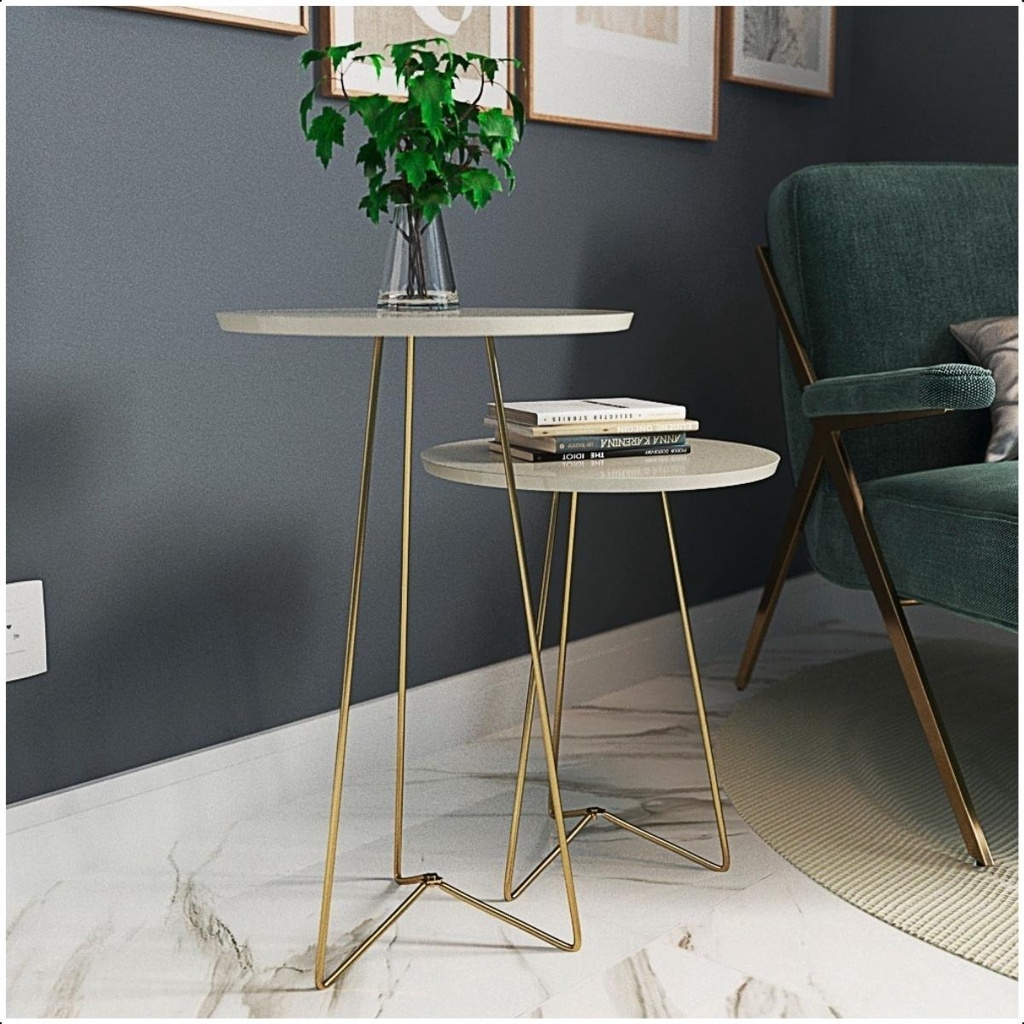 Produzida com estrutura metálica reforçada e pés dourados em metal, ela oferece excelente estabilidade, durabilidade e um visual moderno que valoriza qualquer ambiente. Seu tampo em MDF de alta qualidade garante resistência e acabamento premium, ideal para apoiar objetos decorativos, livros, bebidas, eletrônicos e itens do dia a dia.
